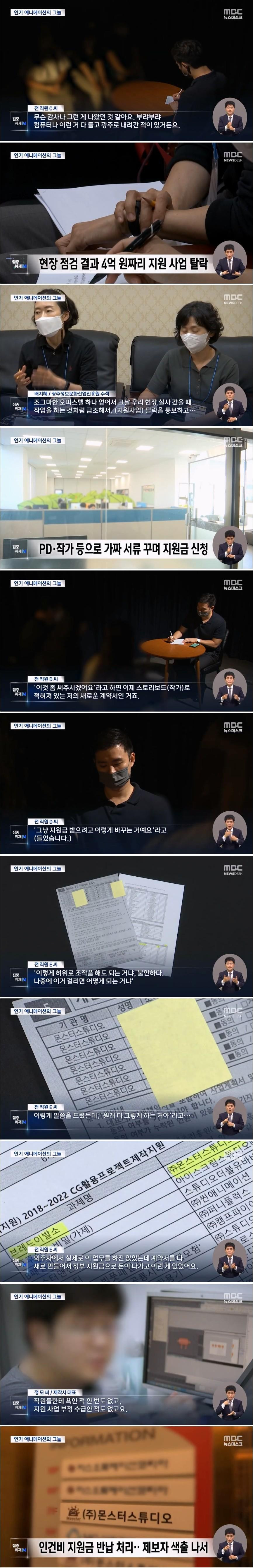 하지만 취재가 시작된 뒤 갑자기 콘텐츠진흥원에 인건비 지원금을 반납 처리한 것으로 확인됐습니다.