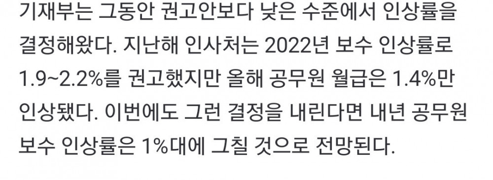 하지만 기재부는 권고보다 낮게 주니 1%대 확정인듯