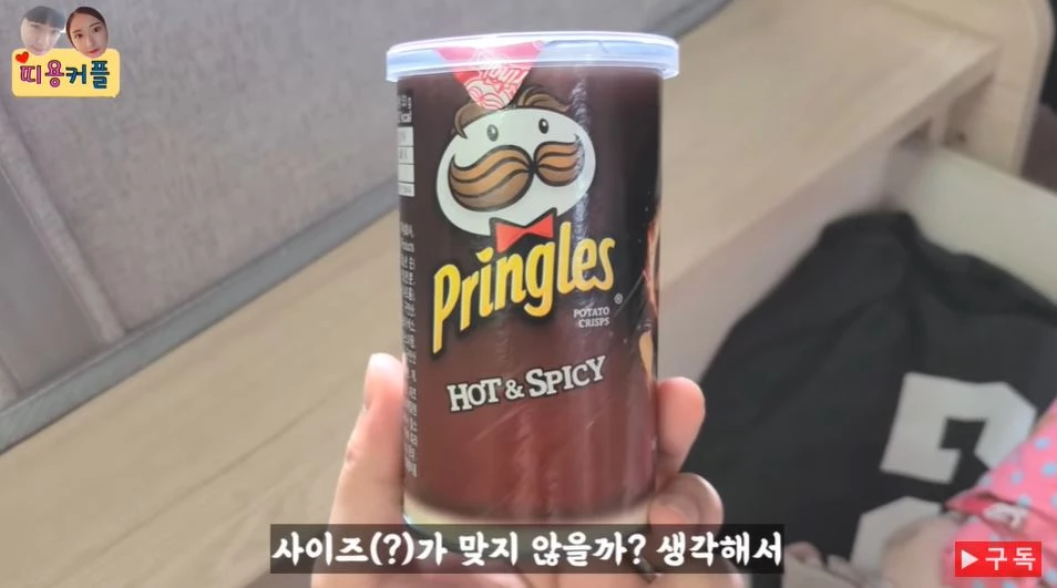 지난달 22일 커플 유튜버 '띠용커플'은 과자 프링글스 통을 이용한 영상을 찍었다. 남자친구가 여자친구를 철저히 속였다.