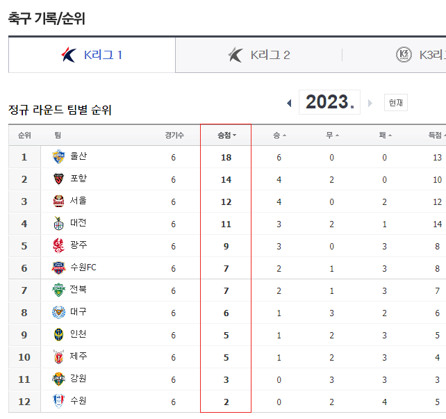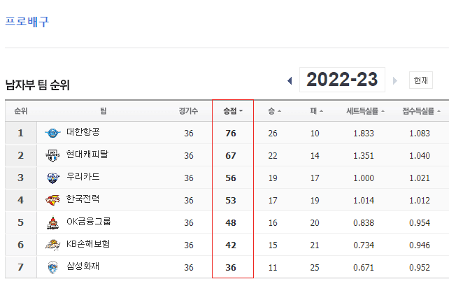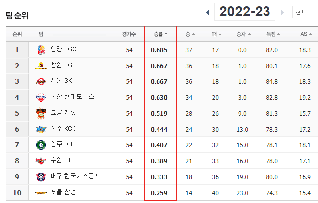 대한민국 4대 프로스포츠전 종목 꼴지 중