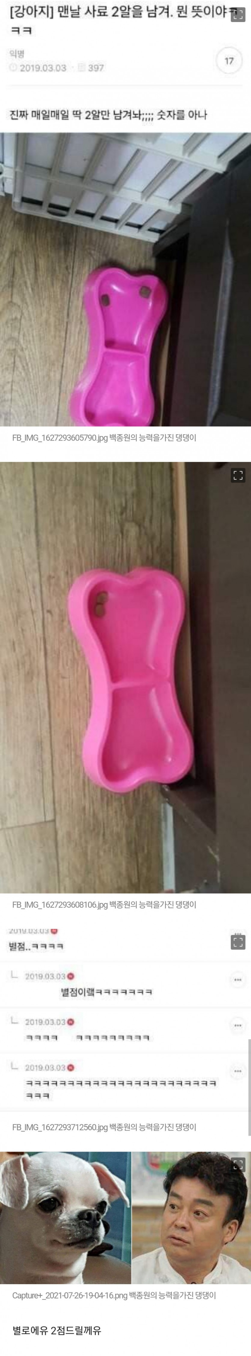 맨날 사료 2알을 남겨. 뭔 뜻이야