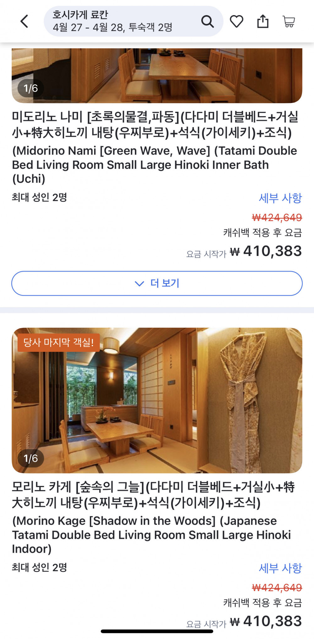 2인이고 석식 조식 포함 약 40만원대 나옴