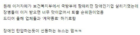 드디어 군대에서 퇴출당하는 장애인업체 쌀케이크