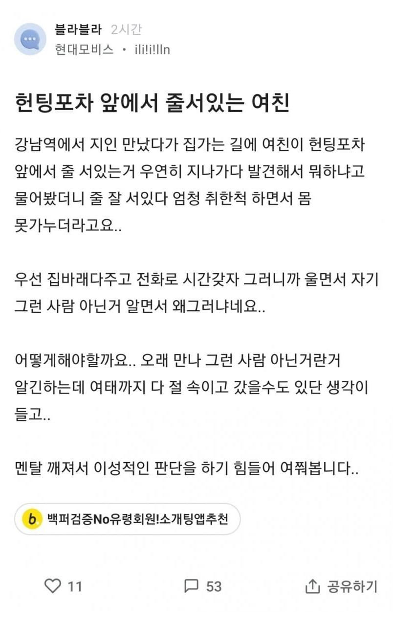 헌팅포차 줄서있는 여친을 본 블라남
