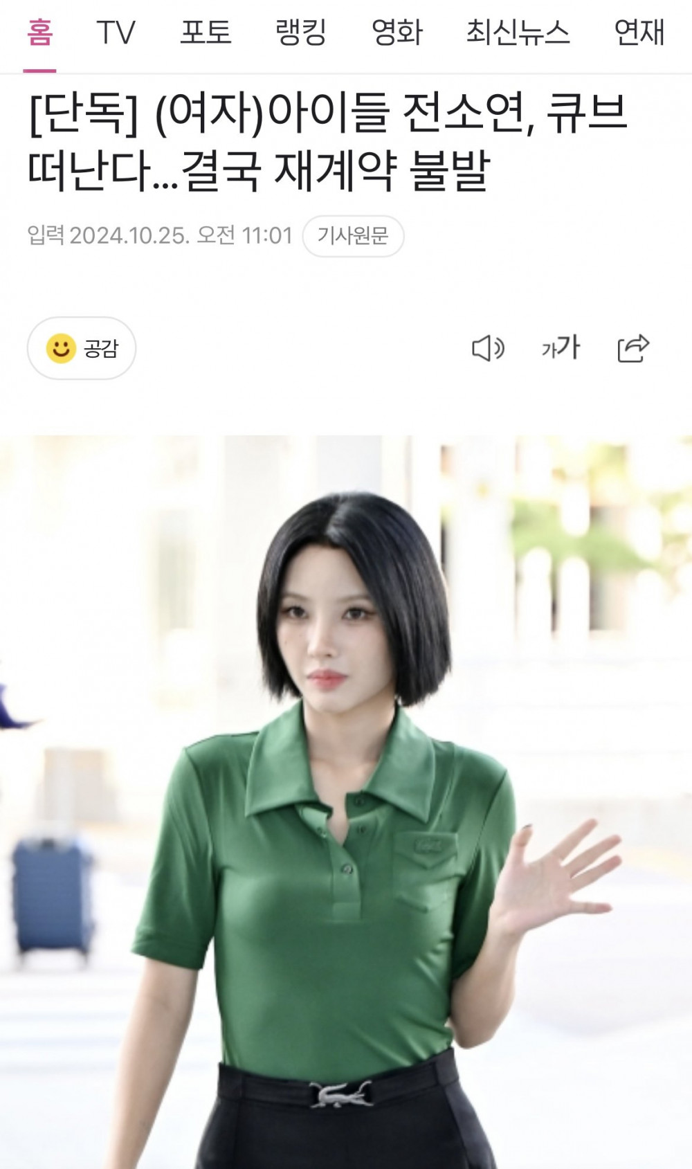 아이들 전소연, 재계약 불발로 큐브 떠난다