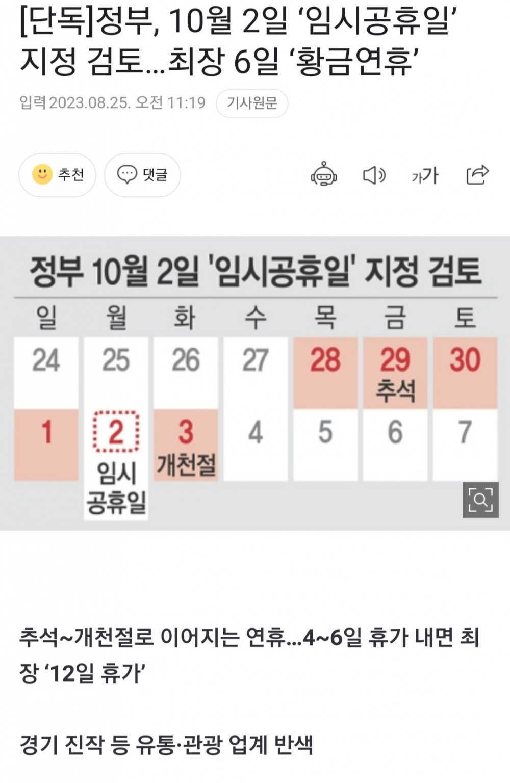 올해 10월 역대급 황금 연휴 예고 ㄷㄷ