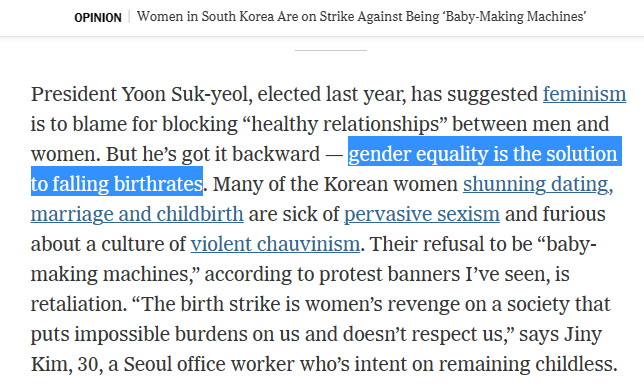 Opinion | Women in South Korea Are on Strike Against Being ‘Baby-Making Machines’ - The New York Times (nytimes.com)