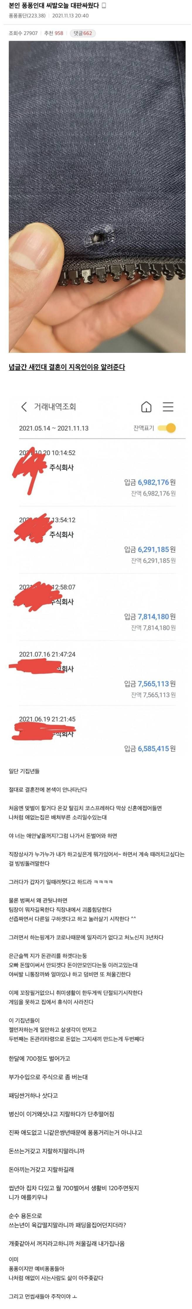 월급 700 벌어 120 주는 퐁퐁남의 이야기