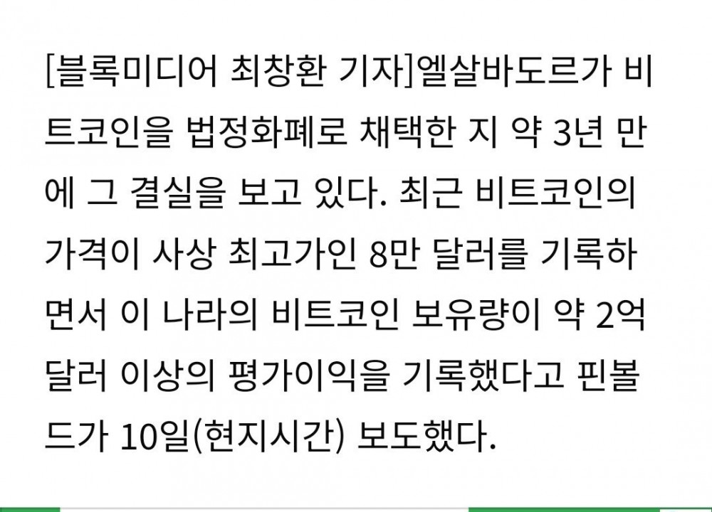 엘살바도르의 투자는 매우 성공적인듯 ㄷㄷ