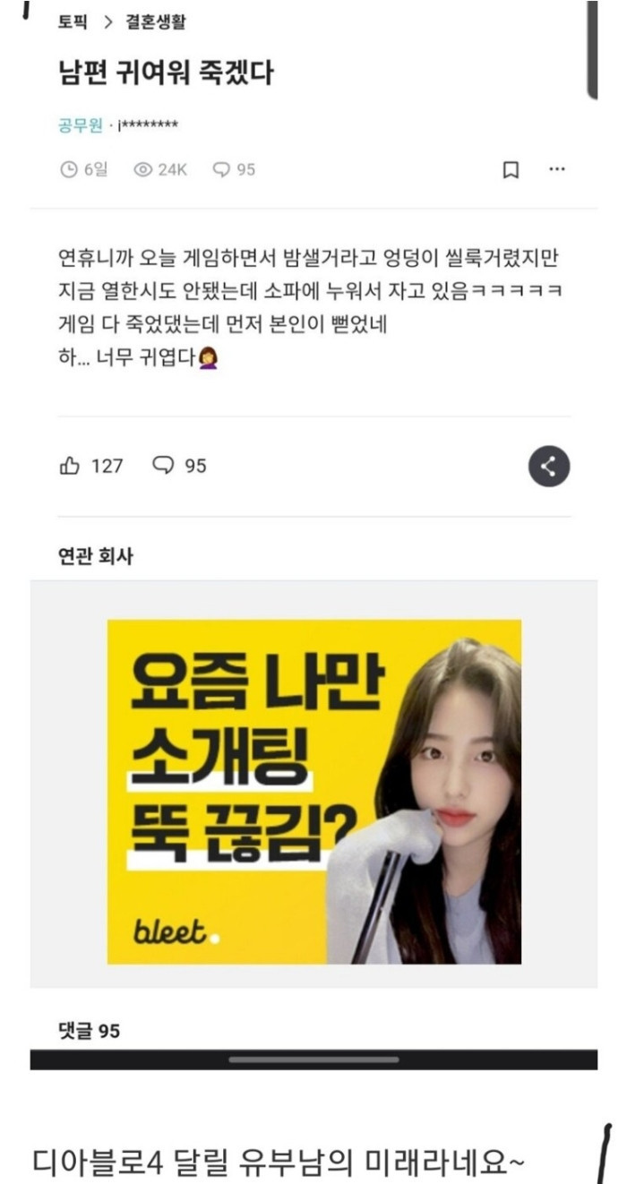 블라) 남편이 너무 귀여워 죽겠다는 와이프.