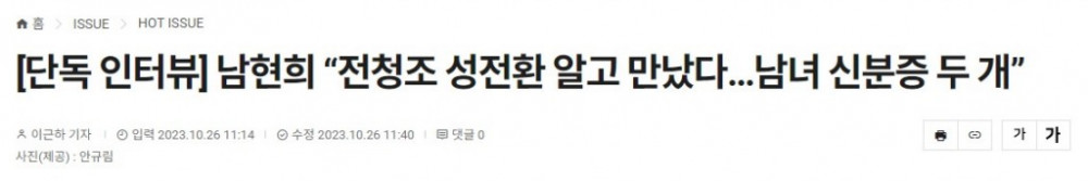 이에 대해 남현희는 “전청조가 성전환 수술을 받았다”고 밝히며, 교제 전부터 알고 있었다고 했다. 26일 새벽 남현희와 전화 통화로 나눈 인터뷰 일부를 공개한다.