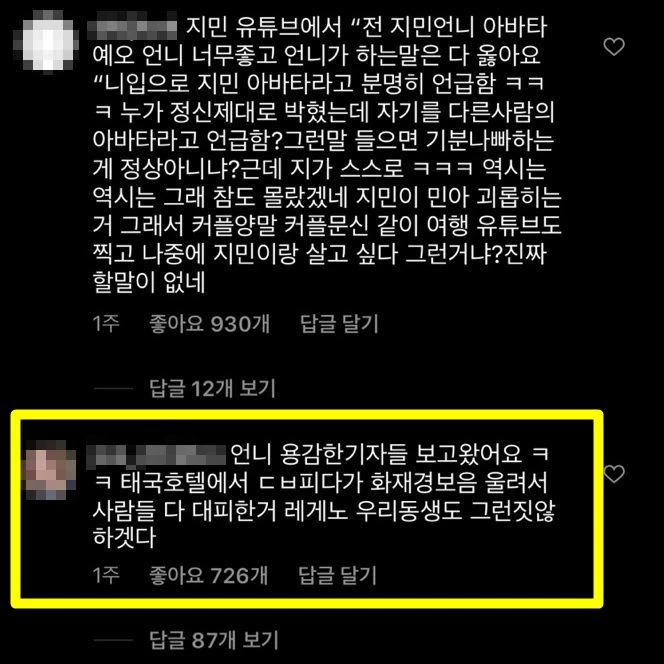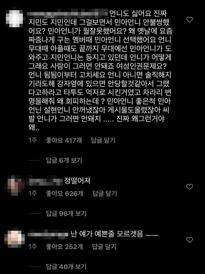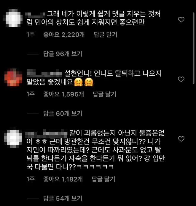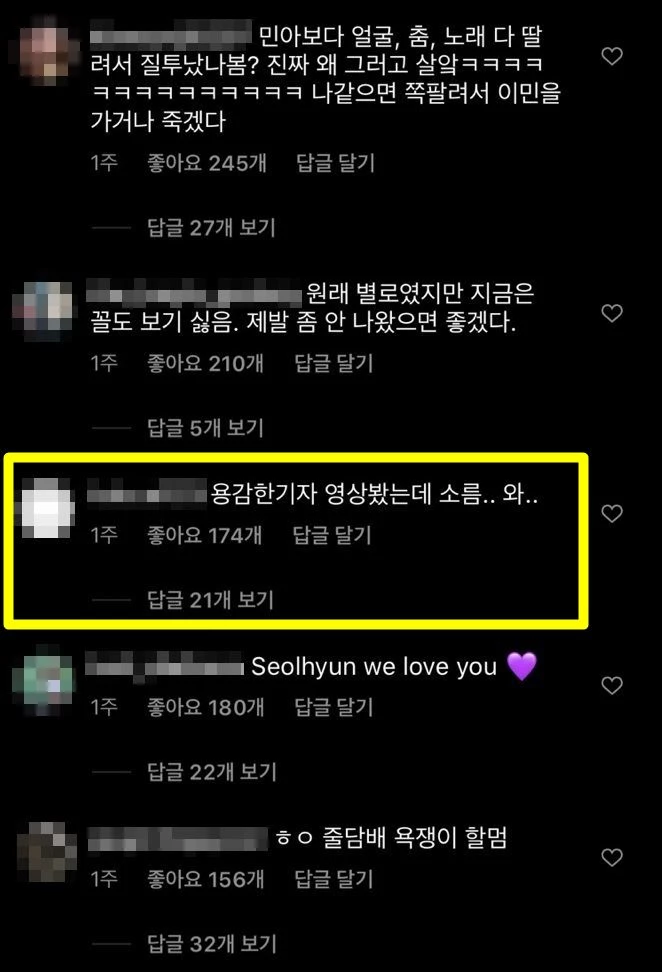 -현재 AOA 설현 인스타그램에 달린 댓글 내용들