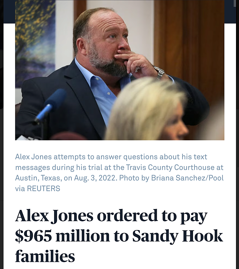 알렉스 존스의 음모론과 각종 가짜뉴스들은 유가족들에게 피해를 주게 됨