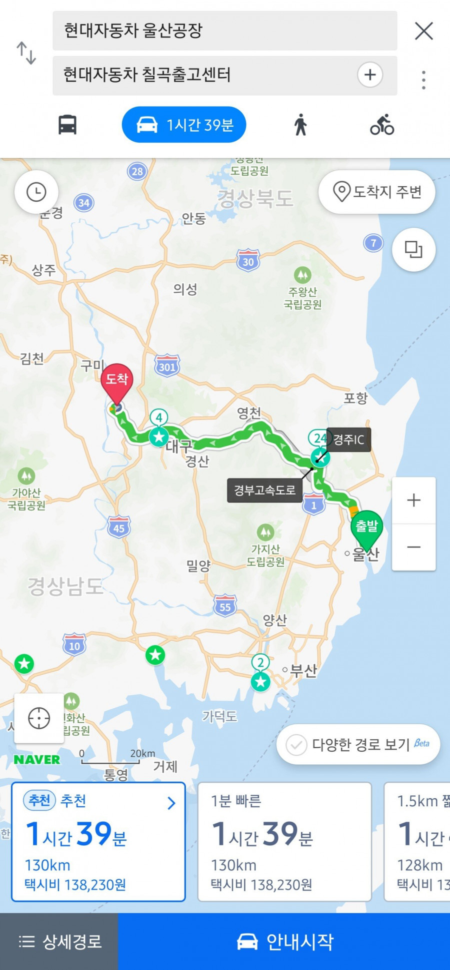참고로 울산공장에서 칠곡출고센터까지는 자그마치 130키로 ㄷㄷ
