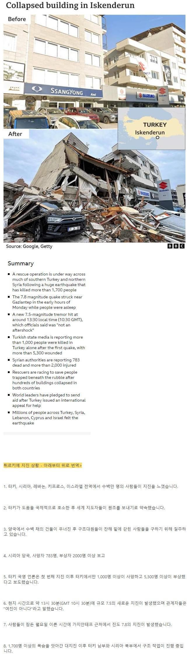 튀르키예 7.8 대지진 건물붕괴 및 지진피해
