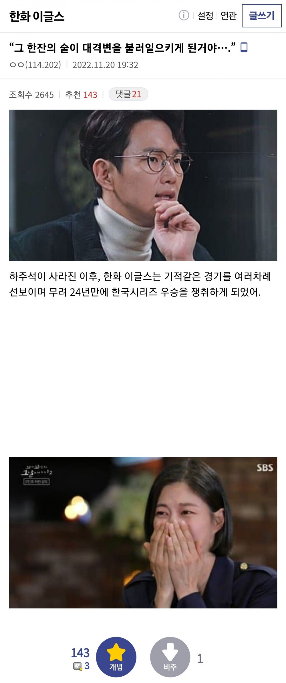“그 한잔의 술이 대격변을 불러일으키게 된거야….”