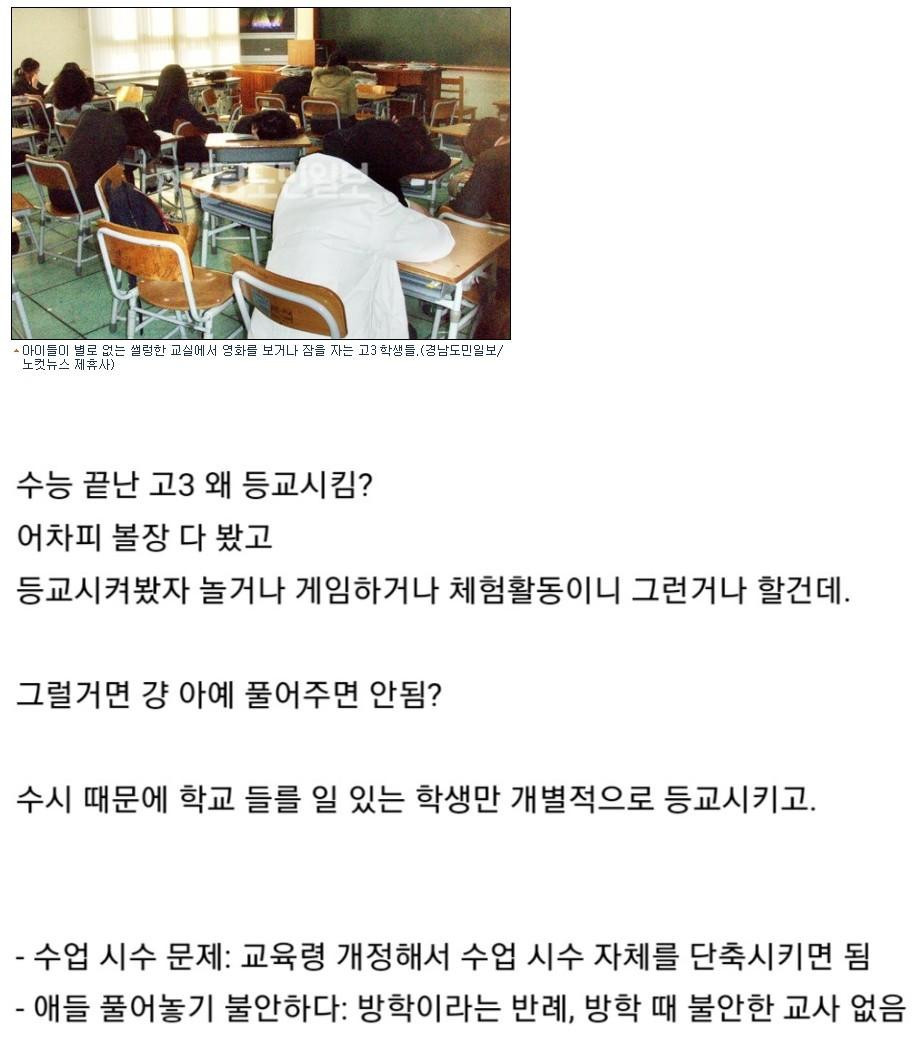 고등학생 때 이해가 안 됐던 수능 끝난 고3 등교
