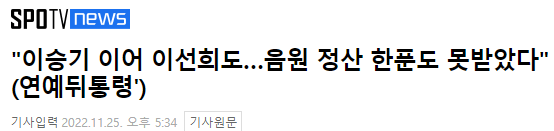 이진호는 "관계자에게 확인해본 결과, 이선희는 음원 수익 정산이라는 개념 자체를 인지하지 못했다고 한다.