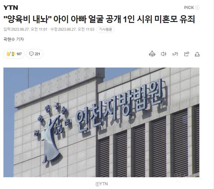 출처 : "양육비 내놔" 아이 아빠 얼굴 공개 1인 시위 미혼모 유죄 (naver.com)
