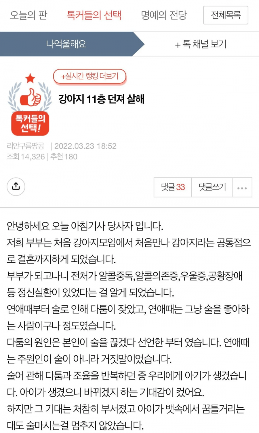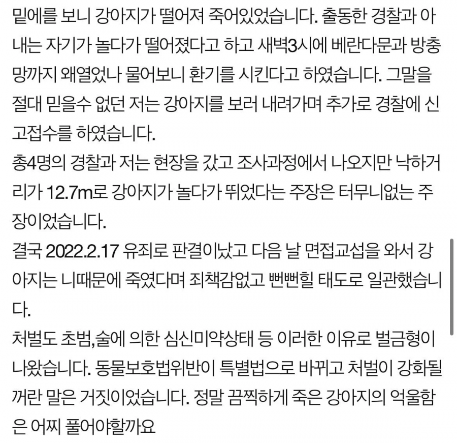 강아지 11층에서 던진 여자의 남편입니다