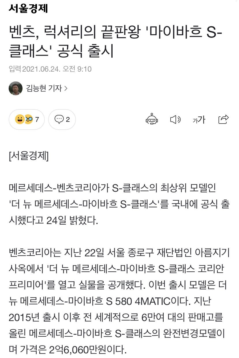 벤츠 마이바흐 국내 공식 출시