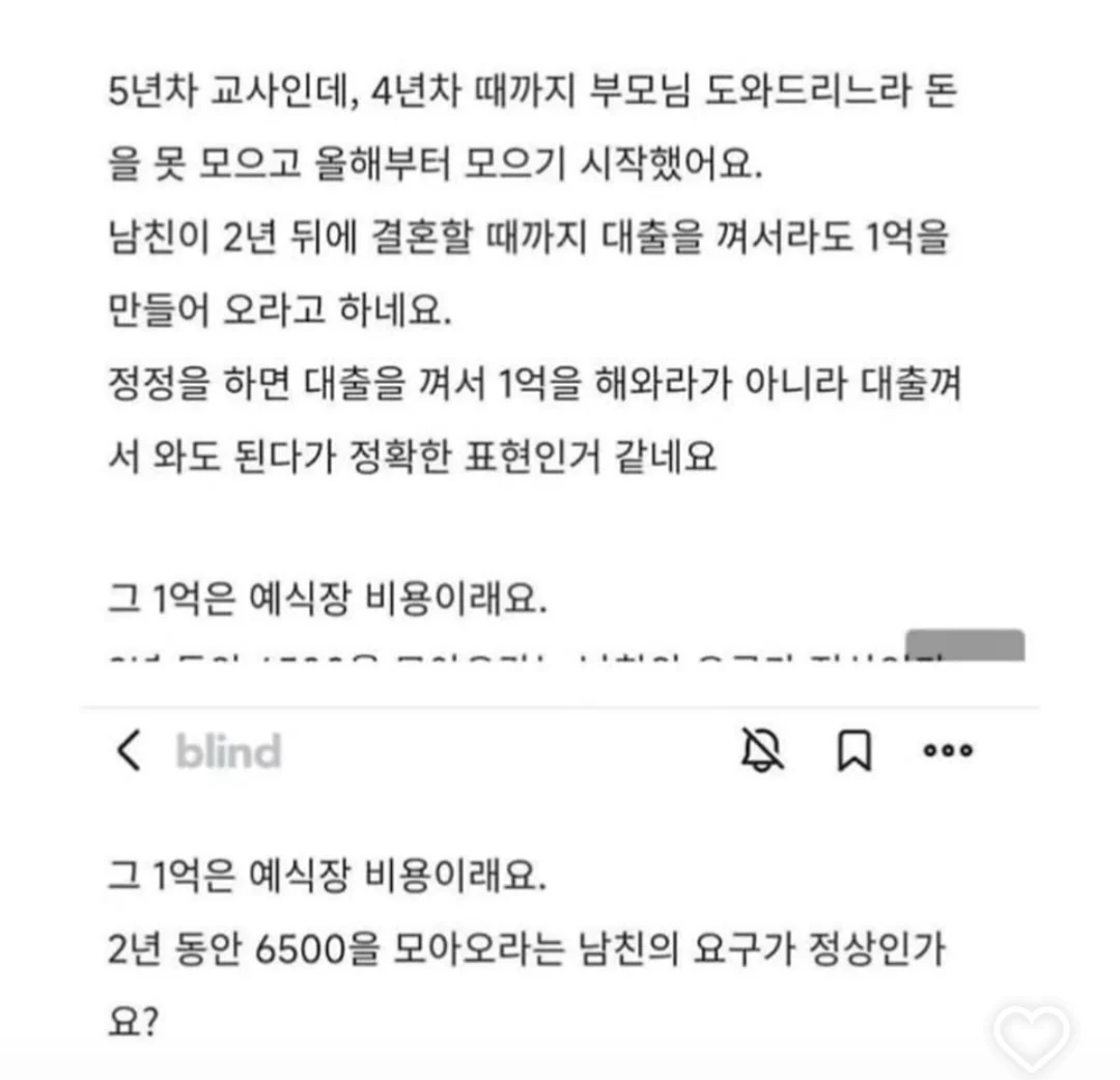 결혼할거면 1억 모아오라는 남자친구