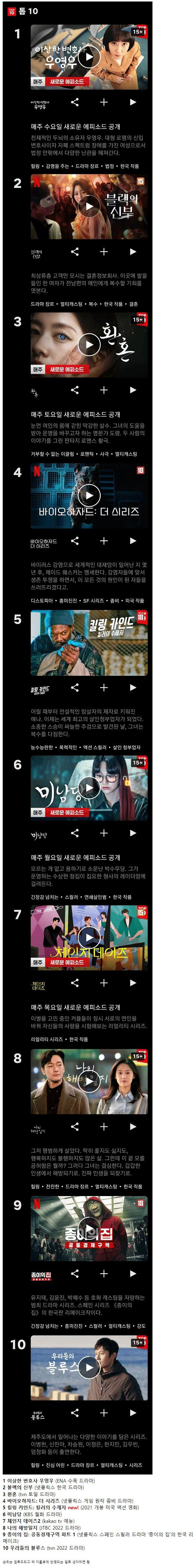 넷플릭스 오늘 한국의 TOP 10 콘텐츠