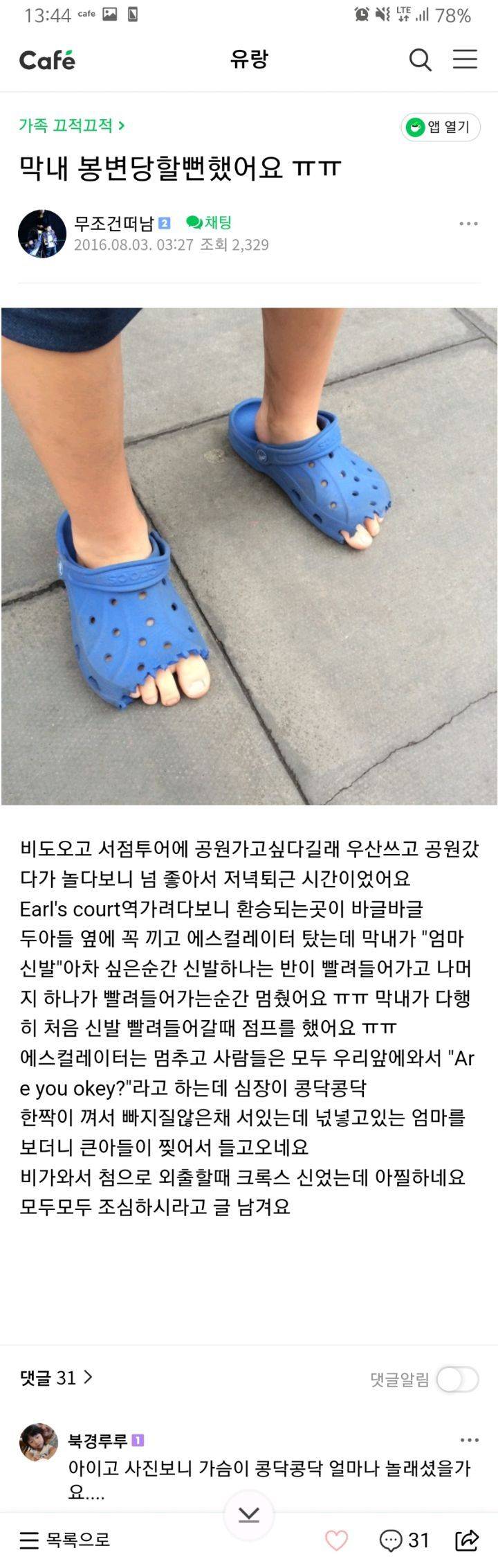 비오는날 절대 신지 말라는 크록스