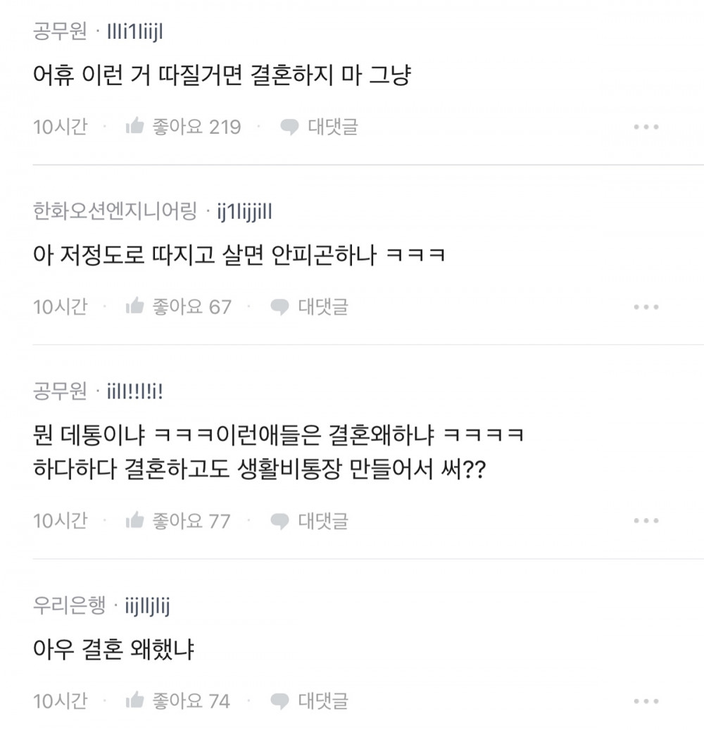 개인 생리대를 부부생활비 통장으로 사도 되냐가 논란