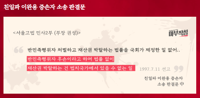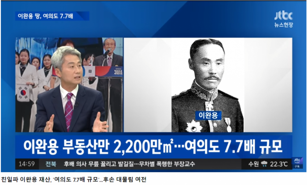 이완용 소유의 토지 중 국가에 환수된건 고작 0.05%.