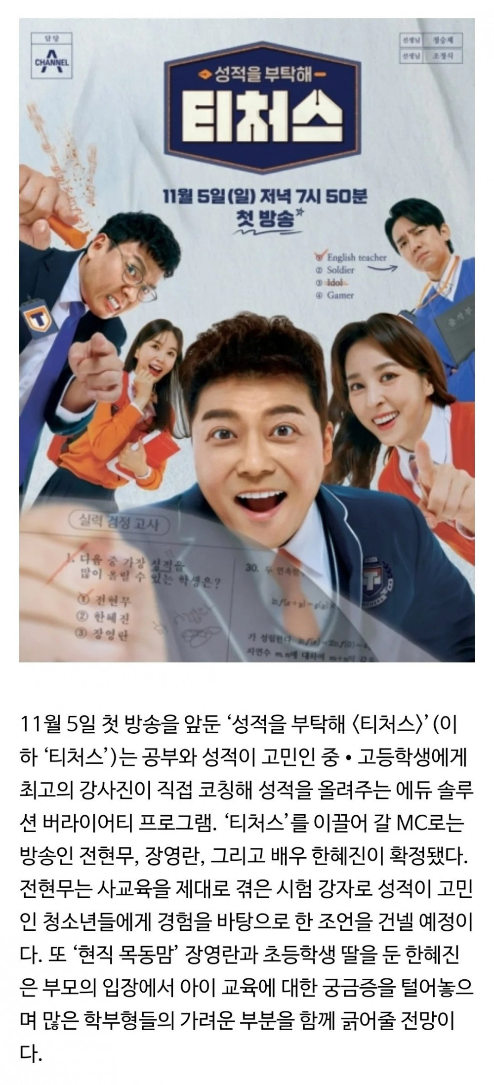 전현무 한혜진, '티처스' MC로 뭉친다