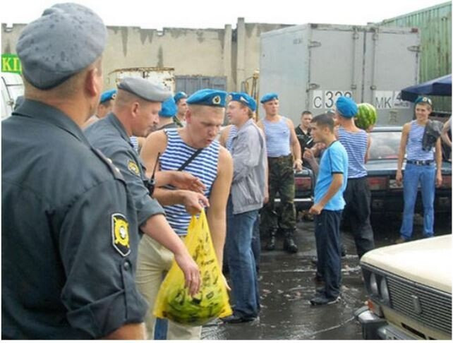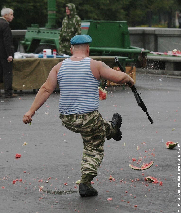 짤은 2011년에 한번 인터넷에 돌았던 사진들인데, 지나가던 VDV전우회가 노점상 아지매가 팔던 수박을 뺏어가서 격파시범하고 지랄 옘병난 내용임.