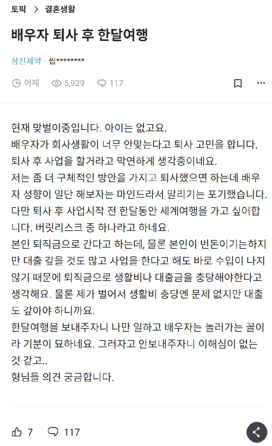 배우자가 퇴사 후 한달여행 간다고함.jpg