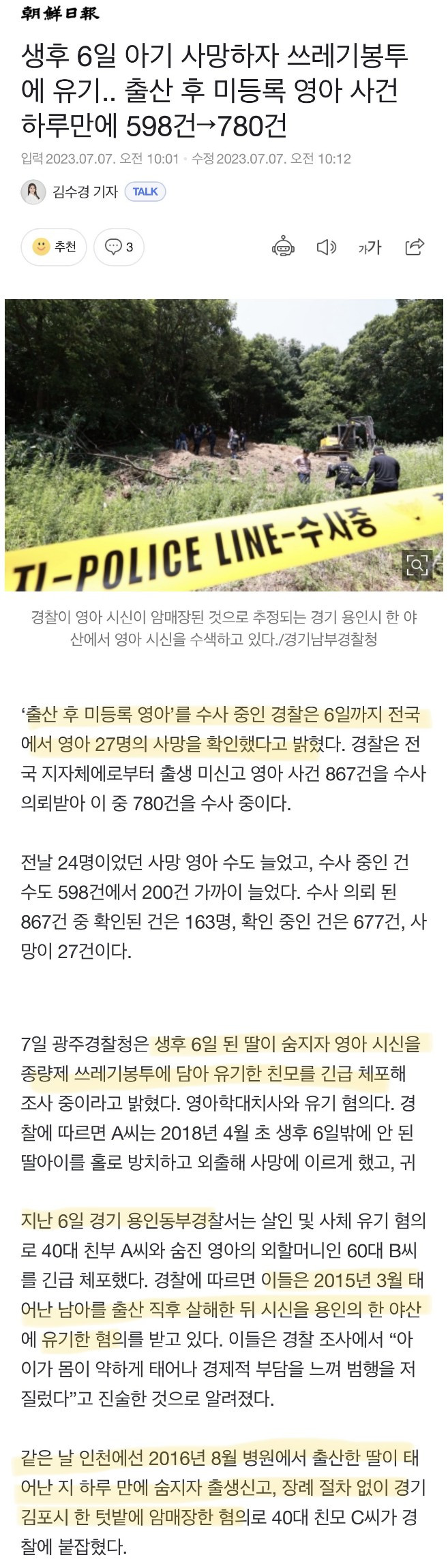 최근 이슈되서 전국적으로 미등록 출생아 조사중인데