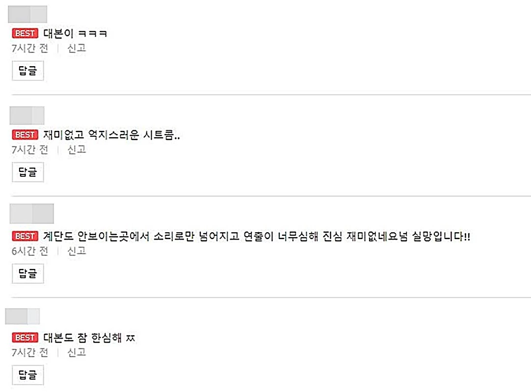 함 씨가 시어머니를 잘 보살피지 않는다는 평을 들으면서도 비슷한 행동을 취하는 것도 과하다는 지적이 있다. 이에 관련 영상에는 "대본의 맛", "설정도 정도껏 해라", "요즘 너무 짜고 치는 것 티 난다" 등 댓글이 달렸다.