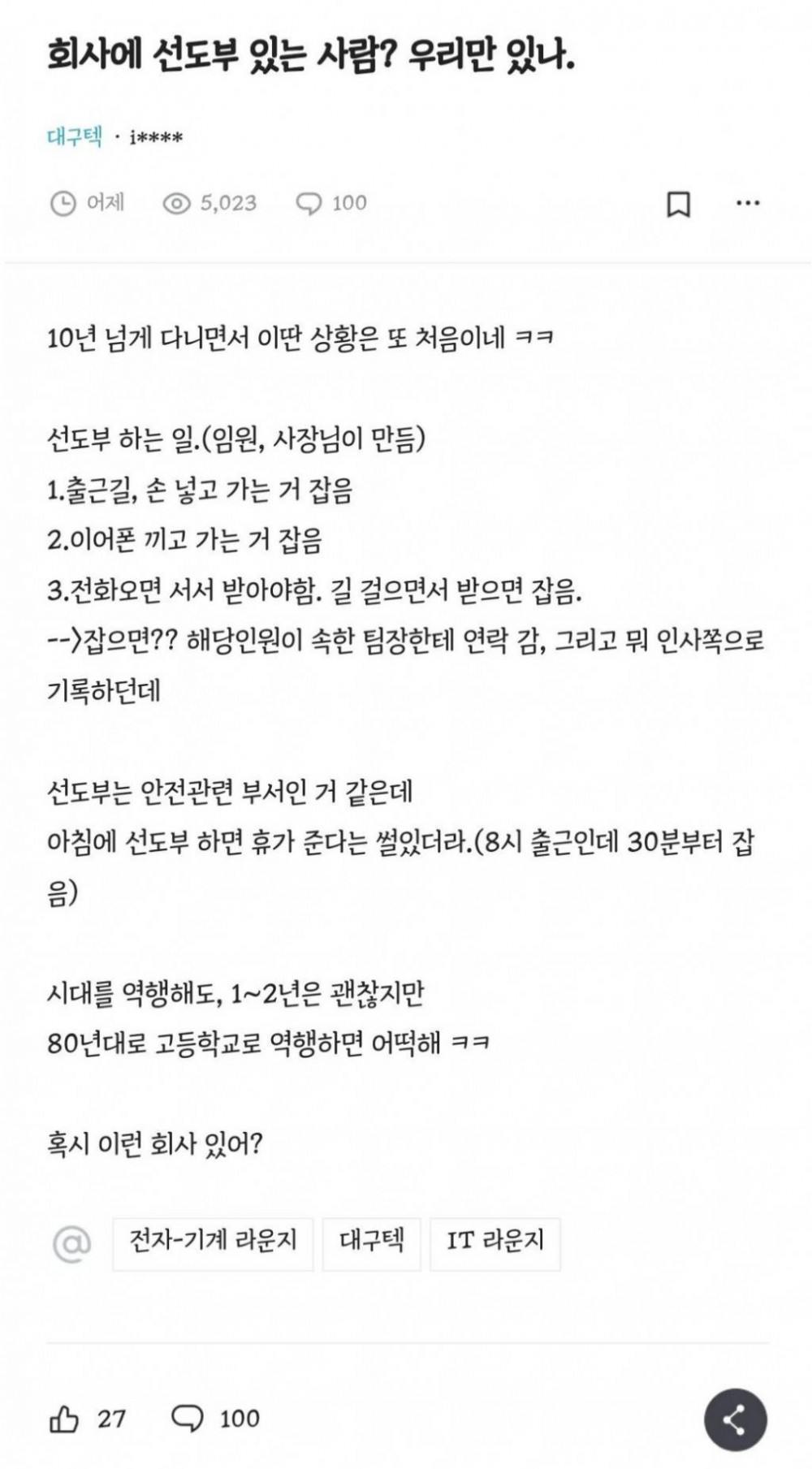 회사에 '선도부' 있냐? 우리 회사만 있는건가...