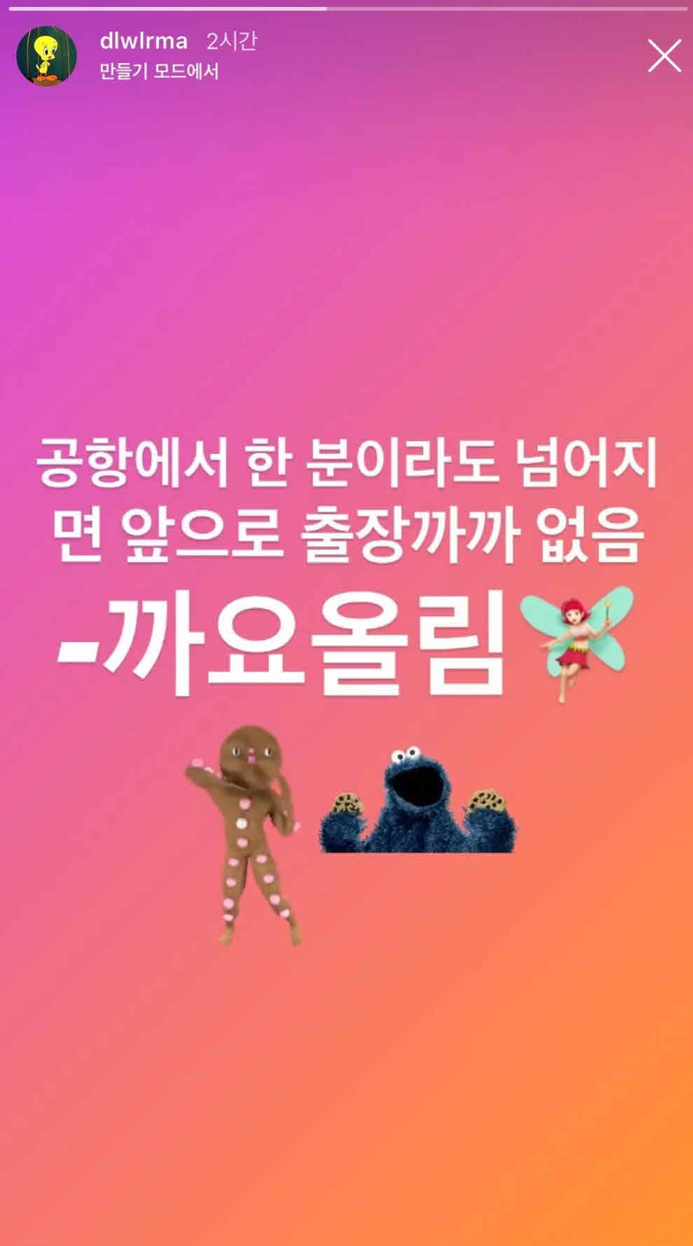 지난 14일 아이유는 자신의 인스타그램 스토리에 공항 질서에 대한 짧은 글을 올렸다. 그는 "공항에서 한 분이라도 넘어지면 앞으로 출장 까까 없음"이라고 단호박을 시전했다.