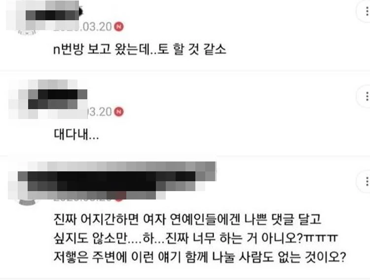 -일부 커뮤니티에서 달린 악의적인 댓글