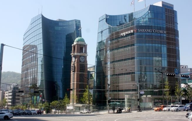 "여기는 도로 점유 문제로 말도 많고 탈도 많은 S교회로군? 서초 대법원 인근에 각 14층 8층짜리 대형건축을 짓다니 대단하군..."