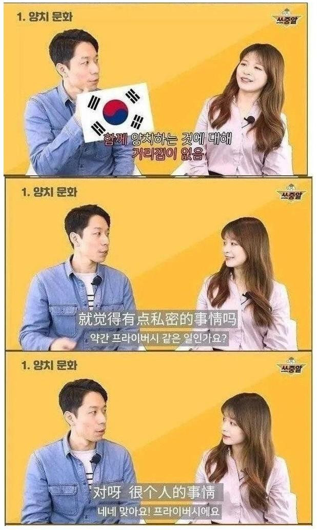 어느 외국인들의 표현을 빌리자면 여럿이 쓰는 화장실에서 손톱 깎거나 머리 감는 느낌이라고 여기는 정도도 있다고 함