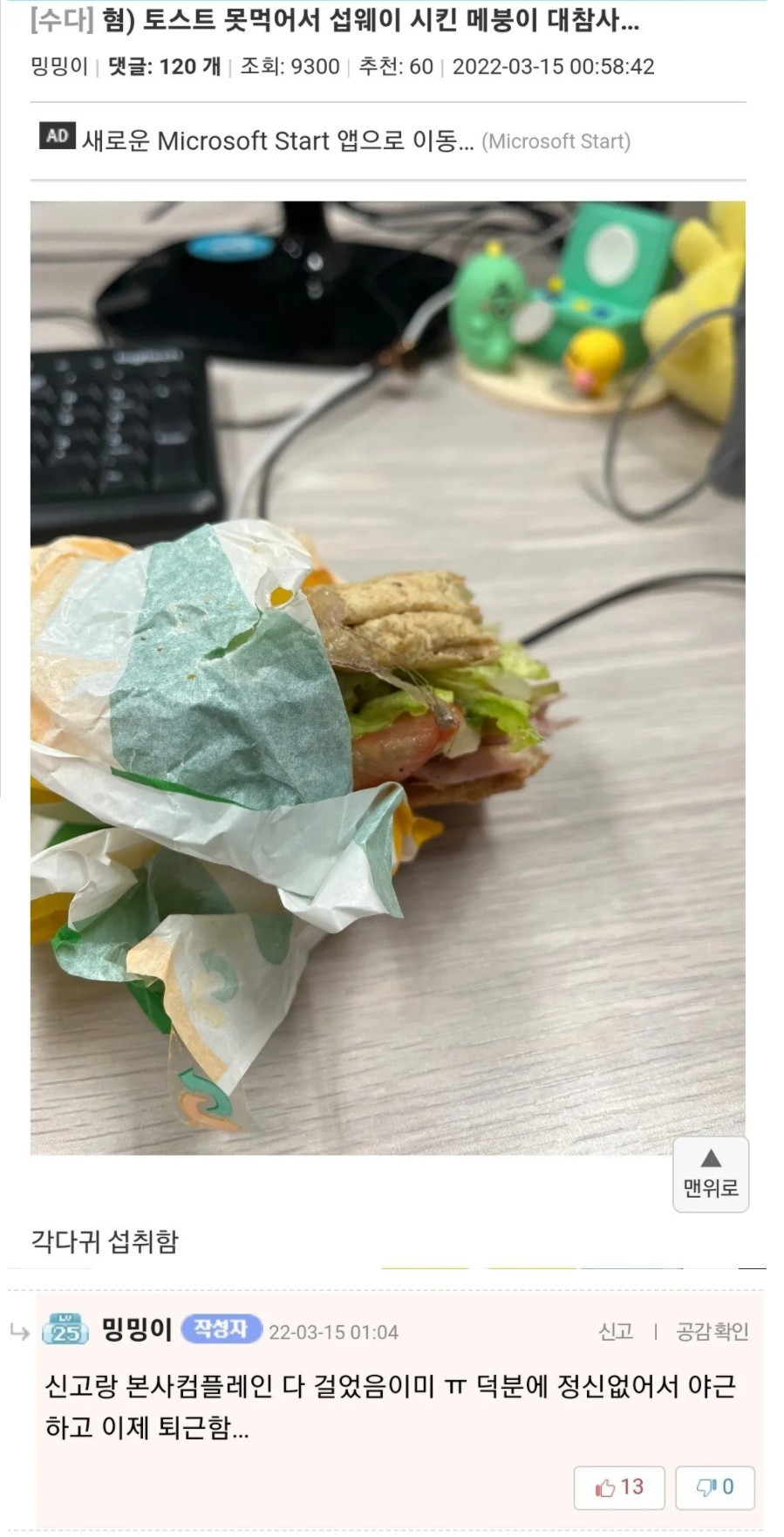 극혐) 서브웨이 먹다가 대참사당한 사람