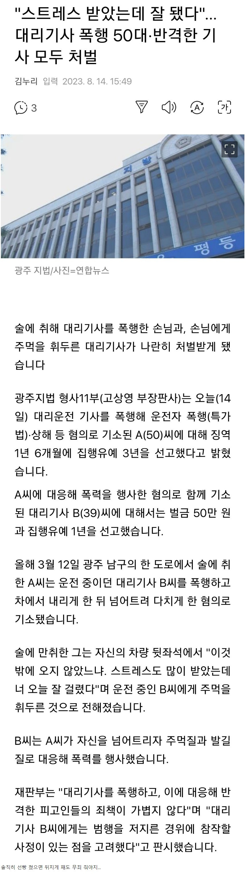 "스트레스 받았는데 잘됐다" 대리기사 폭행, 기사 반격
