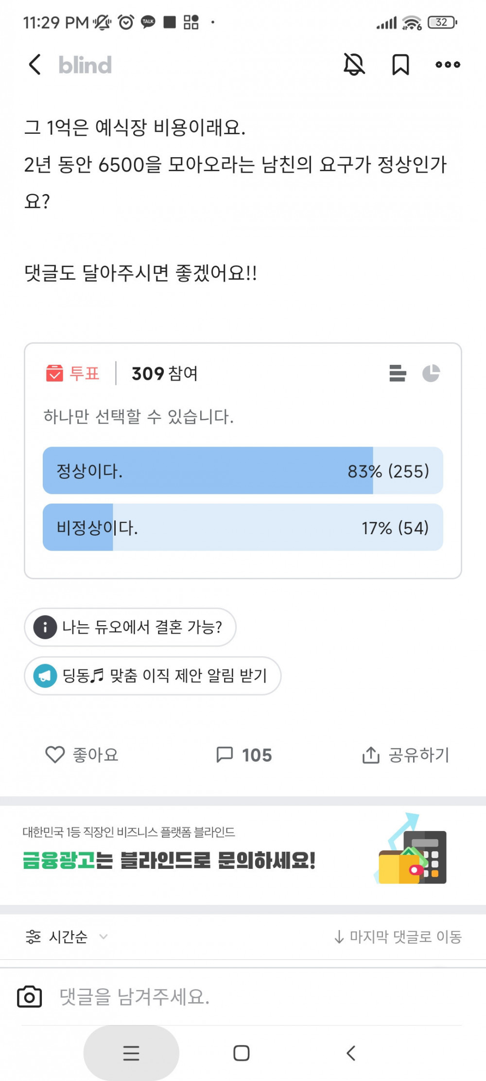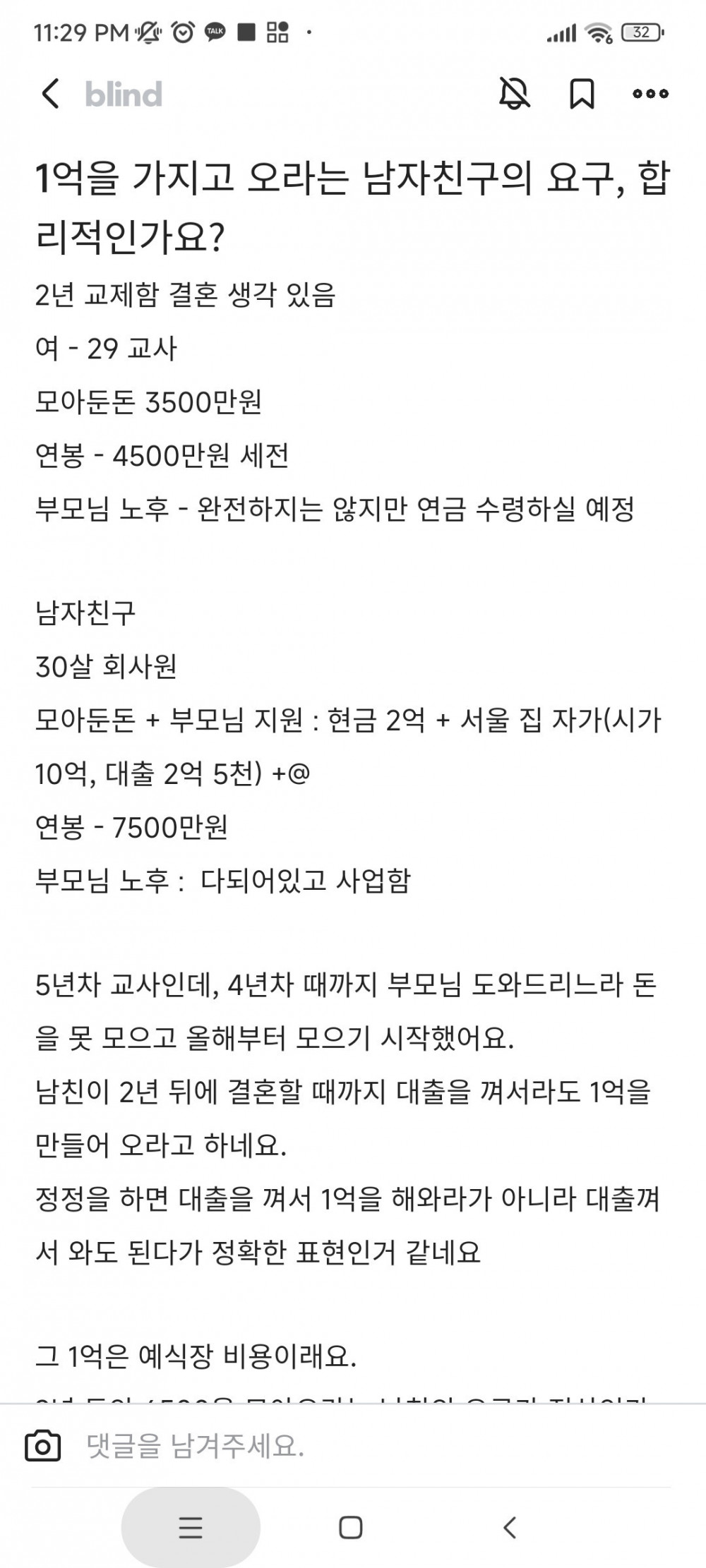 결혼 시 1억 해오라는 남자친구