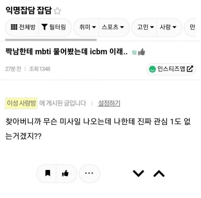 짝사랑남에게 MBTI를 물어본 여자