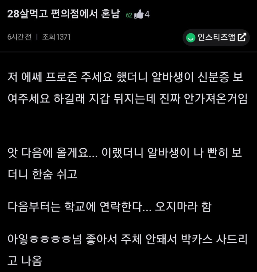"28살 흡연잔데 편돌이한테 혼나고 옴"