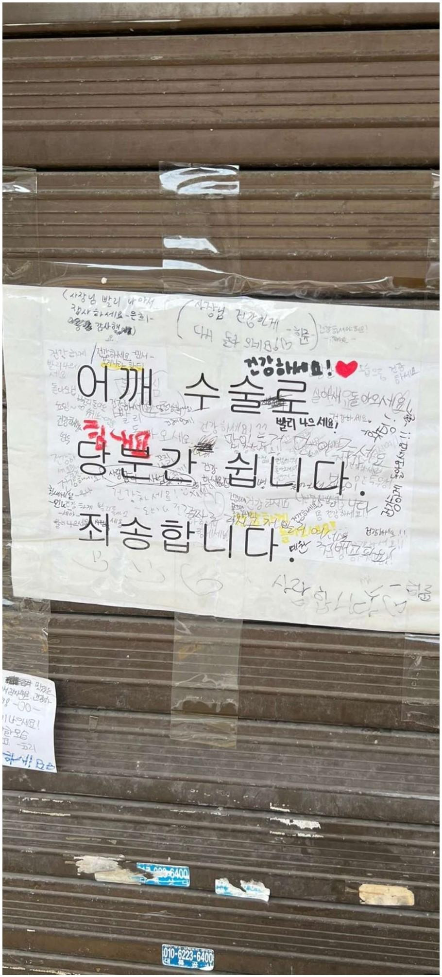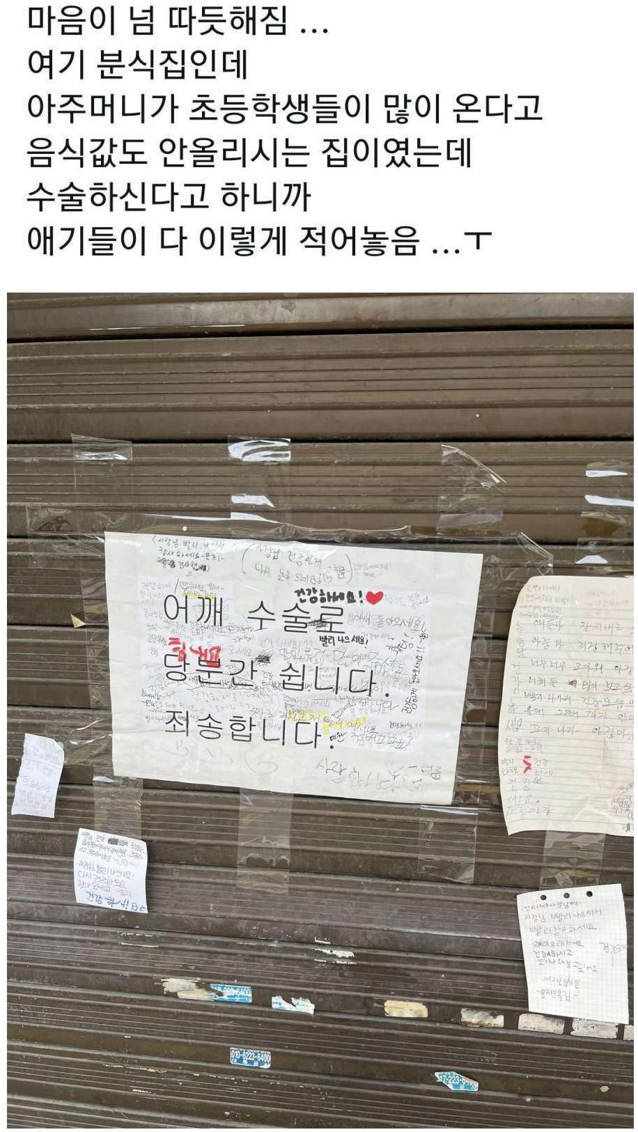 초딩들 단골 분식집 아줌마가 어깨수술로 잠깐 휴업하심