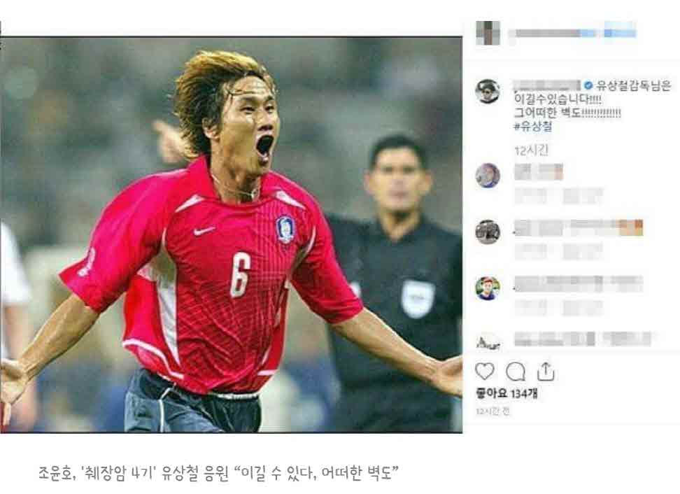 조윤호는 19일 SNS(사회관계망서비스)에 "유상철 감독님은 이길 수 있습니다! 그 어떠한 벽도!"라는 글과 함께 사진을 게재했다.
