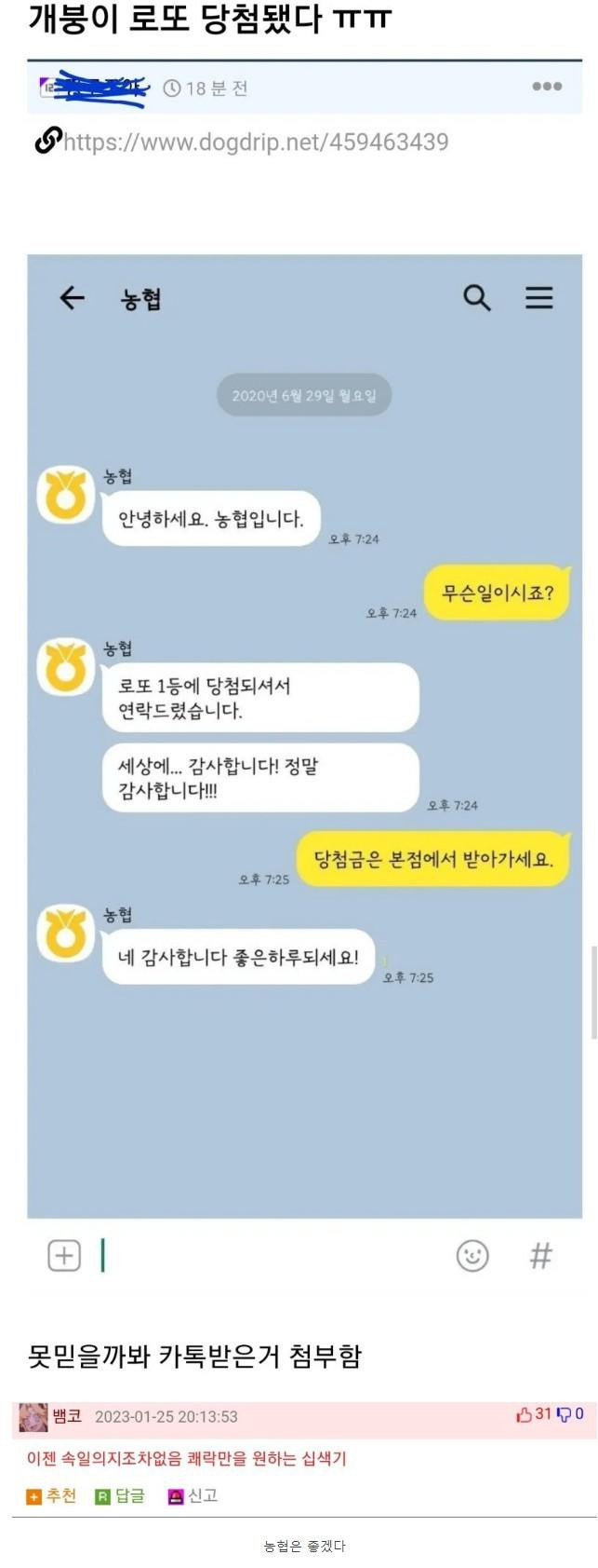 로또 1등에 당첨된 유머대장 유저