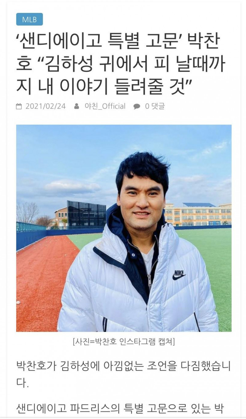 박찬호 “김하성 귀에서 피 날때까지 내 이야기 들려줄 것”