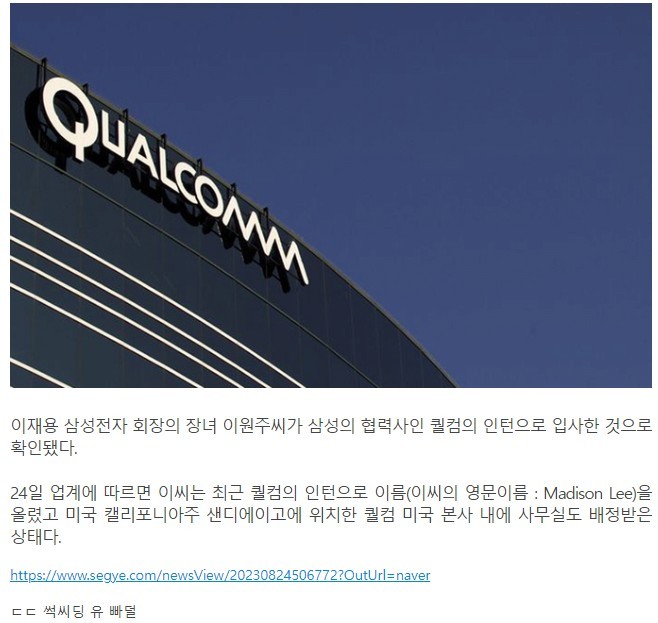 이재용 부회장 장녀 퀄컴 인턴으로 입사